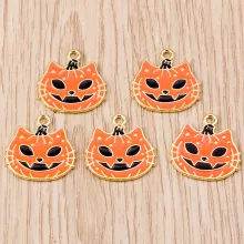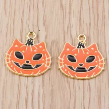 Get ready for Halloween fun with our 10-Piece Cartoon Enamel Halloween Pumpkin Cat Charms! These cute and festive pendants are the perfect addition to your jewelry-making arsenal. Measuring 0.59 x 0.79 inches (15 x 20 mm), these charming charms will add a playful touch to your earrings, necklaces, and other DIY crafts, making them a must-have for the spooky season.