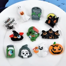 - Set includes 10 assorted Halloween-themed resin flat backs