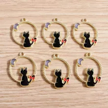 Bring your jewelry designs to life with this delightful set of 10 enamel cartoon cat and moon charms. Perfectly sized at 0.87 x 1.1 inches, these metal pendants feature adorable feline figures sitting on crescent moons — a charming addition to any craft project. Whether you’re a beginner or a seasoned jewelry maker, these cute charms are just the spark your creativity needs.