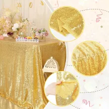 The shimmering gold sequins will catch the light and add a radiant glow to your space, making it the perfect backdrop for photographs and lasting memories. Easy to clean and maintain, this tablecloth allows you to focus on what truly matters—enjoying your celebration with loved ones.