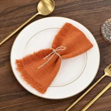 Add warmth and charm to your dining table with these 12PCS Orange Cotton Linen Cloth Napkins. Handmade with care from 100% cotton, each napkin features hand-pulled fringes that give a soft, rustic, and elegant touch. Measuring 16.5 x 16.5 inches, they are the perfect size for weddings, dinner parties, holiday gatherings, or even everyday meals at home.