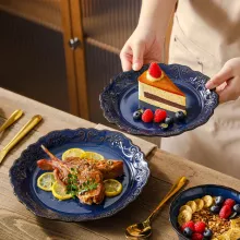 Transform your dining table with this stunning 16-piece ceramic dinnerware set. Featuring a rich blue reactive glaze and elegant relief designs, each piece blends timeless charm with modern sophistication. Perfect for everyday meals or special gatherings, this set provides everything you need to serve family and friends in style.