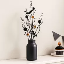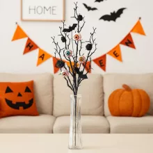Made from high-quality plastic, the bouquet measures approximately 19.7 inches in height, making it a versatile piece for both indoor and outdoor use. The arrangement includes detailed maple leaves, realistic twig branches, playful bat accents, and eerie eyeball details that bring a chilling yet stylish vibe to any setting. The carefully crafted design ensures durability and long-lasting use, so you can enjoy it year after year.