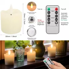 Simply place the candles in the desired location, use the remote to power them on, and set the timer to your preferred duration. The included CR2032 coin batteries will last for hours of light, and they are easily replaceable when needed. With their timed auto shut-off feature, you can rest assured your candles won’t run all night.