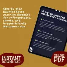 Instantly downloadable and printable, the 7-Step Haunted House Prep Checklist is your secret weapon for a Halloween setup that impresses, scares, and delights. Download today and start planning your most unforgettable haunted house yet!