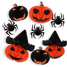 Transform your home into a spooky haven this Halloween with our 8-Piece Honeycomb Ball Hanging Decor Set! Featuring enchanting 3D spider and pumpkin designs, these paper lanterns bring a festive and fun ambiance to any space. Perfect for indoor or outdoor decorating, these charming honeycomb balls are specifically designed to delight both kids and adults, making them essential for your Halloween celebrations!