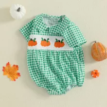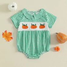 Get your baby girl ready for Halloween with our charming Pumpkin Embroidery Romper! This delightful jumpsuit combines festive flair with cozy comfort, making it perfect for celebrating the season. Featuring a lovely plaid doll collar and cute pumpkin embroidery, this romper ensures your little one stands out while staying warm and stylish.