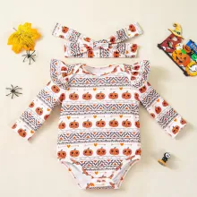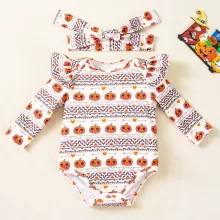 This Halloween, make your little one the star of the celebration with our Adorable Pumpkin Puff Sleeve Halloween Bodysuit for Baby Girls. Designed with cute pumpkin patterns and delightful puff sleeves, this outfit is perfect for parties, trick-or-treating, or simply capturing those memorable autumn photos. The included bow headband adds a charming touch, ensuring your baby girl is dressed to impress in style!
