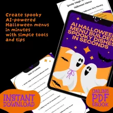 Planning a Halloween feast doesn’t have to be scary. With the AI Halloween Menu Builder: Spooky Dishes in Seconds, you’ll unlock the power of AI to create fun, festive, and unforgettable menus in just minutes. This eBook is your step-by-step guide to planning a party menu that feels effortless yet looks like it took hours. Whether you’re hosting a haunted house bash, a family dinner, or a themed get-together, this digital download is here to spark ideas and save you time.