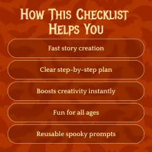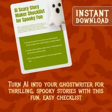 Unleash your inner storyteller and craft chilling tales that captivate and entertain. With the AI Scary Story Maker Checklist for Spooky Fun, you’ll have a clear roadmap for building suspenseful stories in minutes. Perfect for writers, teachers, parents, party hosts, or anyone who loves a good scare, this digital guide makes spooky storytelling easy and fun. Download it today and start conjuring unforgettable scary stories that will keep your audience on the edge of their seat!