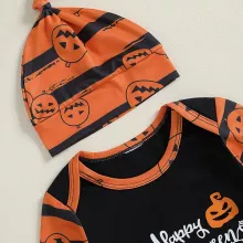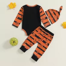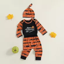 Get your baby ready for the spooky season with this Baby Boy Halloween Outfit. This 3-piece set is a perfect combination of comfort and cuteness, designed for your little pumpkin to enjoy their first Halloween in style. The set includes a long-sleeve romper, pumpkin-patterned pants, and a cozy hat to complete the look. Made from soft, breathable fabrics, this outfit ensures that your baby stays comfortable while celebrating all things Halloween!