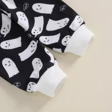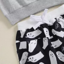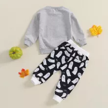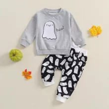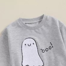 While designed with Halloween in mind, this set is versatile enough for casual outings, playdates, or cozy days at home. The neutral gray color makes it easy to mix and match with other pieces, while the ghost embroidery adds a seasonal touch your little one will look adorable in. Pair it with sneakers or booties for a complete fall-ready look.