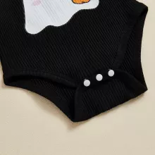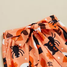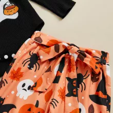 Crafted with soft and breathable fabrics, the romper is made of 94% cotton and 6% elastane for gentle stretch, while the pants are designed with 95% polyester and 5% elastane to ensure a comfortable fit all day long. The bold Halloween-themed ghost, pumpkin, and spider prints bring festive charm, while the matching bow headband completes the look for an irresistible finish.
