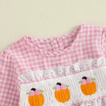 This adorable Baby Girl Halloween Plaid Romper is the perfect addition to your little one’s wardrobe this fall. Designed for ultimate comfort and style, this sweet smocked bodysuit combines playful plaid prints with a cozy fit, making it an ideal outfit for all the Halloween festivities. The long sleeves and soft fabric keep your baby comfortable while adding a touch of seasonal charm. Whether for a pumpkin patch outing or a fall photoshoot, this romper is sure to be a favorite.