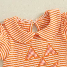 This romper is made from a soft blend of 95% cotton and 5% polyester, giving your baby all-day comfort while keeping her stylish. The sleeveless design makes it easy to layer with a cardigan or wear on its own, depending on the weather. With its bubble jumpsuit style, it offers plenty of room for movement—perfect for crawling, playing, and giggling all Halloween long.