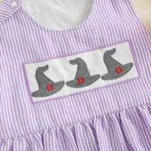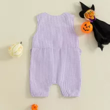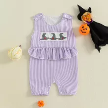 - Festive Design: Striped romper with an adorable witch hat embroidery – perfect for Halloween vibes.