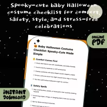 Get ready for the sweetest spooky season with the Baby Halloween Costume Checklist: Spooky-Cute Made Simple. This digital download takes the guesswork out of dressing your little one for Halloween night. Whether you’re planning a pumpkin parade, a neighborhood stroll, or just want to capture adorable photos, this checklist ensures your baby’s costume is cute, safe, comfortable, and practical. Designed with busy parents in mind, it’s your all-in-one guide to choosing, prepping, and enjoying the perfect baby Halloween costume without the stress.