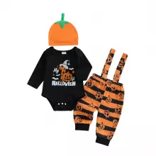 Get your baby ready for spooky season with this charming 3-piece Halloween outfit set. Designed with comfort and festive style in mind, this set includes a soft long-sleeve romper with a playful letter print, pumpkin-print suspender pants, and a matching hat. Whether it’s for a Halloween party, photoshoot, or cozy autumn day, this outfit will make your little one the cutest pumpkin in the patch.