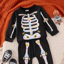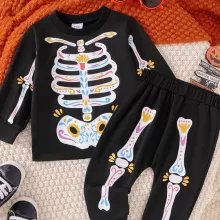 Get your baby ready for a spook-tacular Halloween with this charming 2-piece skeleton print outfit. This fun and festive set includes a long-sleeve top and matching pants, designed to keep your little one stylish and comfortable all season long. Perfect for Halloween celebrations, themed photoshoots, or casual fall days, this outfit will make your baby stand out in the cutest way possible. Crafted with your child’s comfort in mind, it’s an ideal choice for those precious moments that deserve to be unforgettable.