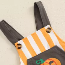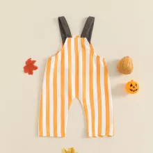 Dress your baby in this adorable Baby Halloween Striped Pumpkin Overalls for a festive and fun look this season! With a charming pumpkin print, a square neckline, and an easy-to-wear sleeveless design, this full-length jumpsuit is perfect for celebrating the Halloween spirit. Whether you’re heading out for a trick-or-treating adventure or snapping pictures to capture the memories, this outfit will make your baby the cutest one in the crowd.