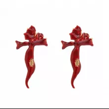These earrings are crafted with attention to detail and designed for comfort. The silver ear pin provides a lightweight feel, while the striking red rose and cross motif bring out your bold personality. Their timeless yet edgy design makes them versatile enough to wear year-round.