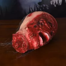 Get ready to shock and thrill with the Bloody Zombie Head Halloween Prop – a spine-chilling addition to your haunted décor collection. Designed for those who love to go all-out with their spooky setups, this realistic, blood-drenched zombie head is crafted from quality latex, capturing every gruesome detail to send chills down your guests’ spines. Whether you’re transforming your home into a haunted house or throwing a horror-themed party, this prop is your secret weapon for unforgettable scares.