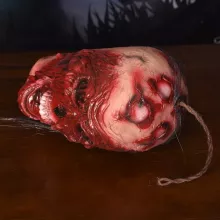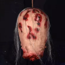 With a life-sized shape and disturbingly lifelike features, this latex head prop looks like it came straight out of a horror movie. The gory details — from the blood-spattered face to the haunting expression — are sure to spark screams and gasps. No electronics needed — the eerie realism does all the work. Place it by your door, on a table, or hide it in dark corners for shocking reveals that leave a lasting impression.