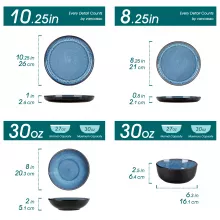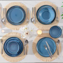 Bring a touch of artistry to every meal with this exquisite 24-piece blue dinnerware set. Featuring a unique reactive glaze finish, each piece is crafted with care to offer you a one-of-a-kind dining experience. Perfectly designed for both casual everyday meals and special occasions, this set is sure to elevate your dining presentation with its vibrant colors and elegant design.