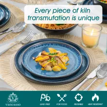 What makes this set truly special is its reactive-glaze artistry. Through a meticulous glazing process, each piece undergoes a high-temperature transformation, resulting in stunning, one-of-a-kind color variations and patterns. No two pieces are exactly the same, making every meal feel unique and personal.