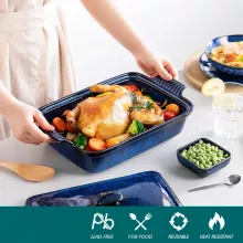 Elevate your everyday cooking with this stunning blue stoneware casserole dish. Designed with kiln-fired craftsmanship, it boasts a mesmerizing texture and glossy finish that makes every piece one-of-a-kind. Not only does it deliver exceptional performance, but it also doubles as a beautiful centerpiece on your dining table. With its generous size and versatile lid, this baking dish is perfect for hearty family meals, special gatherings, or simple weeknight dinners.