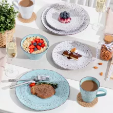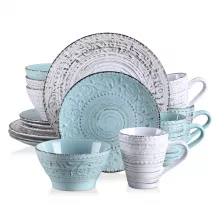 The natural color elements give the set a modern and sophisticated look that complements a variety of table settings. The beautiful blue-green and beige tones are easy to match with other dinnerware or decorative elements, allowing you to effortlessly create a cohesive and elegant dining experience. The embossed liana design adds a unique, artistic flair that will impress your guests, making every meal feel special.