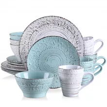 The natural color elements give the set a modern and sophisticated look that complements a variety of table settings. The beautiful blue-green and beige tones are easy to match with other dinnerware or decorative elements, allowing you to effortlessly create a cohesive and elegant dining experience. The embossed liana design adds a unique, artistic flair that will impress your guests, making every meal feel special.
