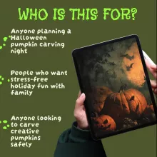 • Perfect for families, kids, and Halloween enthusiasts who want to make carving fun and safe.