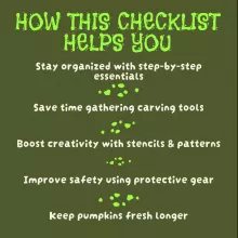 • Stay organized and confident with a step-by-step guide to pumpkin carving essentials.