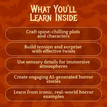 - Chapter 1: Secrets of a Spine-Chilling Story – Learn what makes a story truly scary, uncover common horror tropes, and master the art of setting the perfect spooky scene.