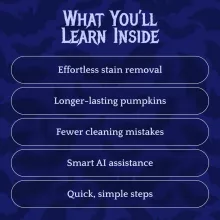 Get ready to enjoy the pumpkin season without the mess! Clean Your Pumpkin with Ease! is a complete digital guide designed to help you remove even the toughest pumpkin stains quickly and effectively. Whether you’re carving, painting, or displaying pumpkins, this guide gives you clear, easy-to-follow instructions to keep your pumpkins looking their best. Packed with practical pumpkin stain removal tips and cutting-edge AI support, it’s perfect for anyone who wants spotless pumpkins without the guesswork or frustration.