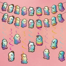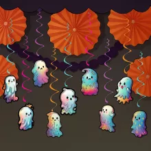 Made from high-quality paper, this Halloween Ghost Banner is designed to impress with its bright colors and charming designs. The banner is easy to hang and can be displayed in various ways, such as on walls, ceilings, or doorways. Its spiral pendant design adds a dynamic touch that moves gently with the air, creating a whimsical effect. The package includes everything you need for a complete Halloween display, allowing you to effortlessly set the mood for the season.