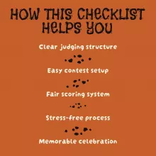 Take the guesswork out of planning your next costume contest. Download the Costume Contest Scorecard Checklist now and create an event that’s fun, fair, and unforgettable for all participants. Don’t wait—make your celebration one to remember!
