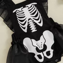 Get your little one ready for Halloween festivities with our Newborn Toddler Halloween Clothes! This adorable Baby Girl Summer Romper features a charming skeleton print and delightful mesh ruffles, creating a fun outfit that is perfect for the spooky season. With its easy-to-wear design and cute aesthetic, this romper is sure to be a favorite in your child’s closet!