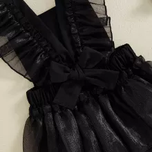 - Stylish Ruffles: The mesh ruffles give the romper a trendy flair, making your baby girl look extra adorable while enjoying her Halloween adventures.