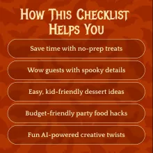 - Unique: Includes AI tips and a spooky dessert name generator cheat sheet you won’t find in other checklists.