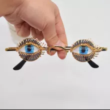 These sunglasses are designed with both fashion and fun in mind. The lightweight yet durable metal frame ensures comfort while maintaining a bold look. The small round lenses add a retro touch, while the devil’s eye design makes them stand out as the ultimate conversation starter. Perfectly trendy and chemical-free, these shades combine safety with style.