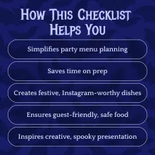 Stop stressing over Halloween party prep and start enjoying the fun! Download the Easy Halloween Party Food Checklist today and turn your spooky celebration into a seamless, delicious, and unforgettable event. Your perfect Halloween party is just a click away!