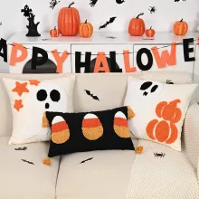 Add a touch of fun and comfort to your seasonal décor with these embroidered ghost pillow covers. They’re a simple yet stylish way to transform your space into a cozy Halloween retreat. Pair them with pumpkins, candles, and blankets for the ultimate fall setup. Don’t miss the chance to make your home festive and inviting—bring these charming cushion covers home today!