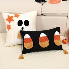 Each pillow cover is crafted with care, featuring knitted texture and detailed embroidery that brings the ghost design to life. The sizes—12×20 inches and 18×18 inches—are versatile for layering on sofas, beds, or bay window seats. Their neutral yet festive tones allow them to pair easily with other Halloween or autumn décor, making them a stylish and functional addition to your seasonal collection.