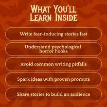 - Chapter 2: Crafting Your Own Quick Horror — Get idea-generation techniques, avoid common pitfalls, and use writing prompts and AI tools to boost your creativity.