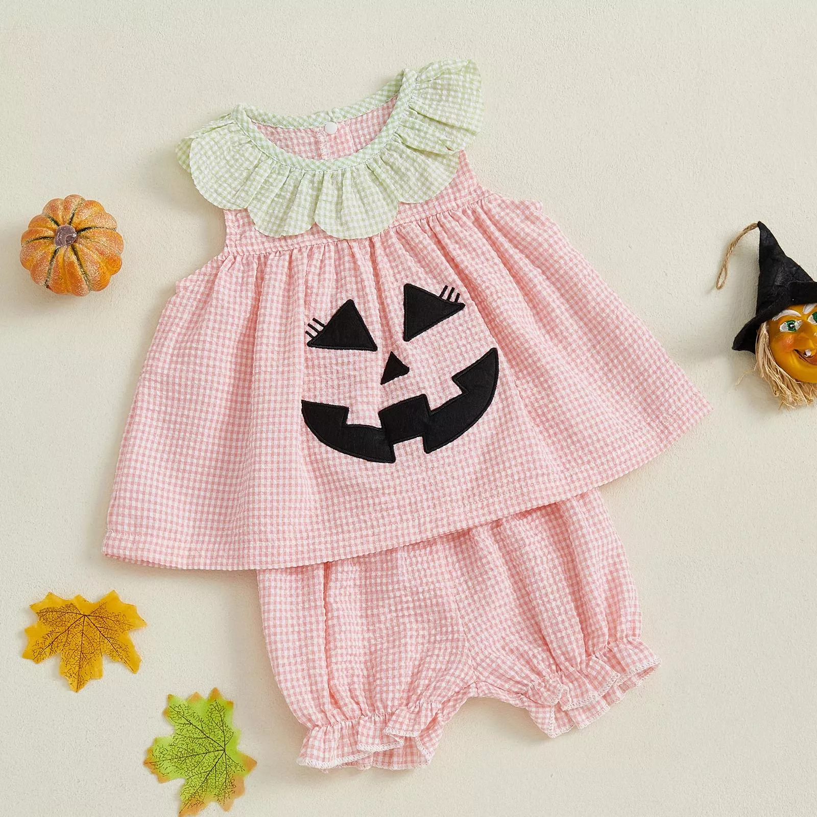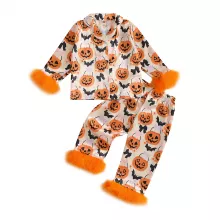 Make bedtime extra fun and festive with this adorable Halloween Pajamas Set for girls ages 1–9. Featuring a playful pumpkin print and soft feather cuffs, this two-piece loungewear set combines comfort with holiday charm. The button-up shirt with a lapel collar and long sleeves pairs perfectly with elastic-waist pants, giving your little one a relaxed yet stylish look for Halloween nights and beyond.