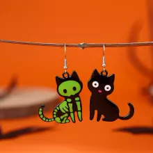 Crafted with a unique blend of gothic charm and festive fun, each earring features intricate geometric patterns inspired by spider webs, ghosts, pumpkins, bats, black cats, and skulls. The design is edgy yet feminine, perfect for Halloween lovers and fans of gothic or punk fashion. Made with skin-friendly materials, they contain no high-concern chemicals, making them safe for sensitive ears.