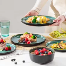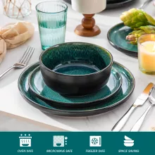 What sets this dinnerware apart is its unparalleled beauty and functional design. The green reactive glaze not only adds a pop of color to your dining table but also offers a touch of artistic flair. Each piece is subtly different, making your set a unique piece of art. Perfect for both casual meals and special occasions, this dinnerware set brings charm and sophistication to your dining experience.
