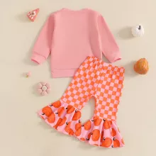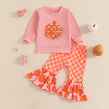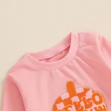 The set includes a long-sleeve crewneck sweatshirt with festive letter embroidery and a pair of matching flare-leg pants with an elastic waistband. The pink color scheme is perfect for girls and works beautifully with various Halloween accessories. The pullover style top is easy to put on and take off, making diaper changes a breeze.